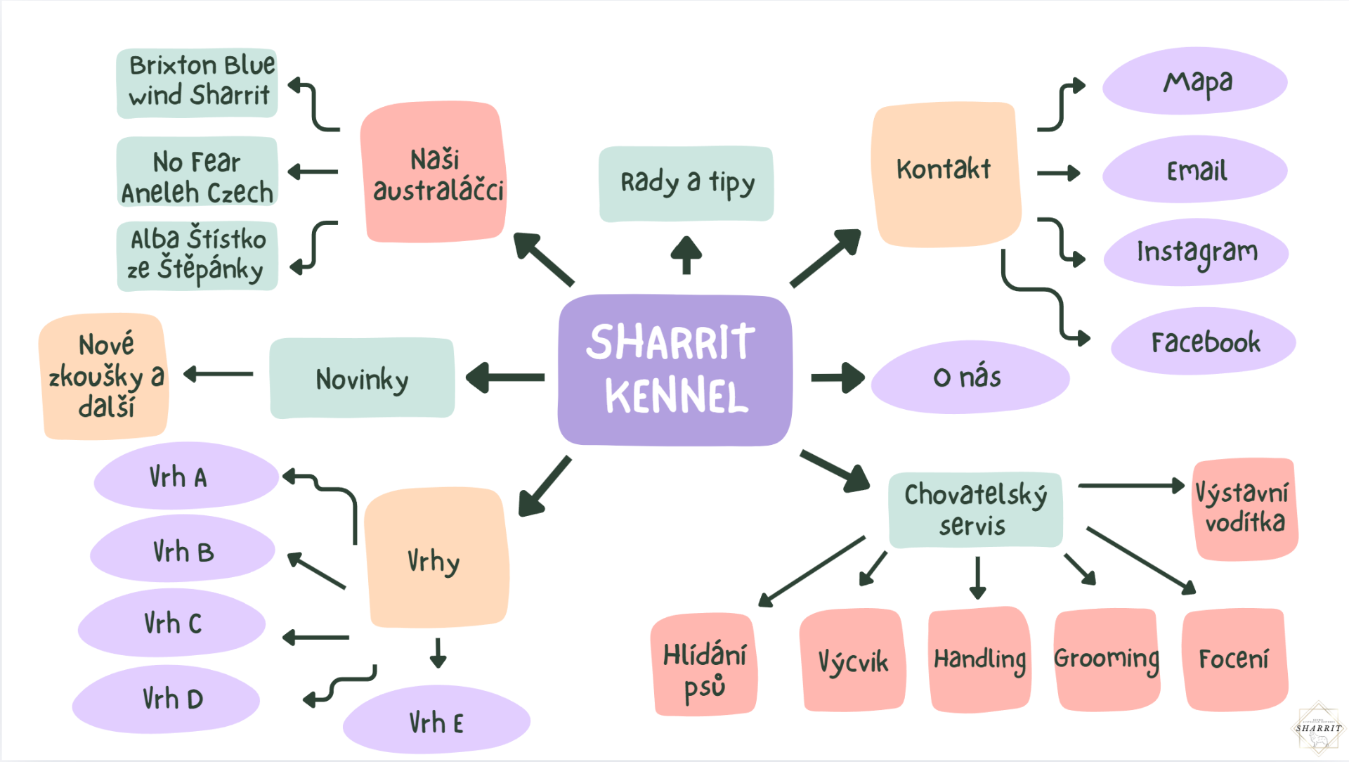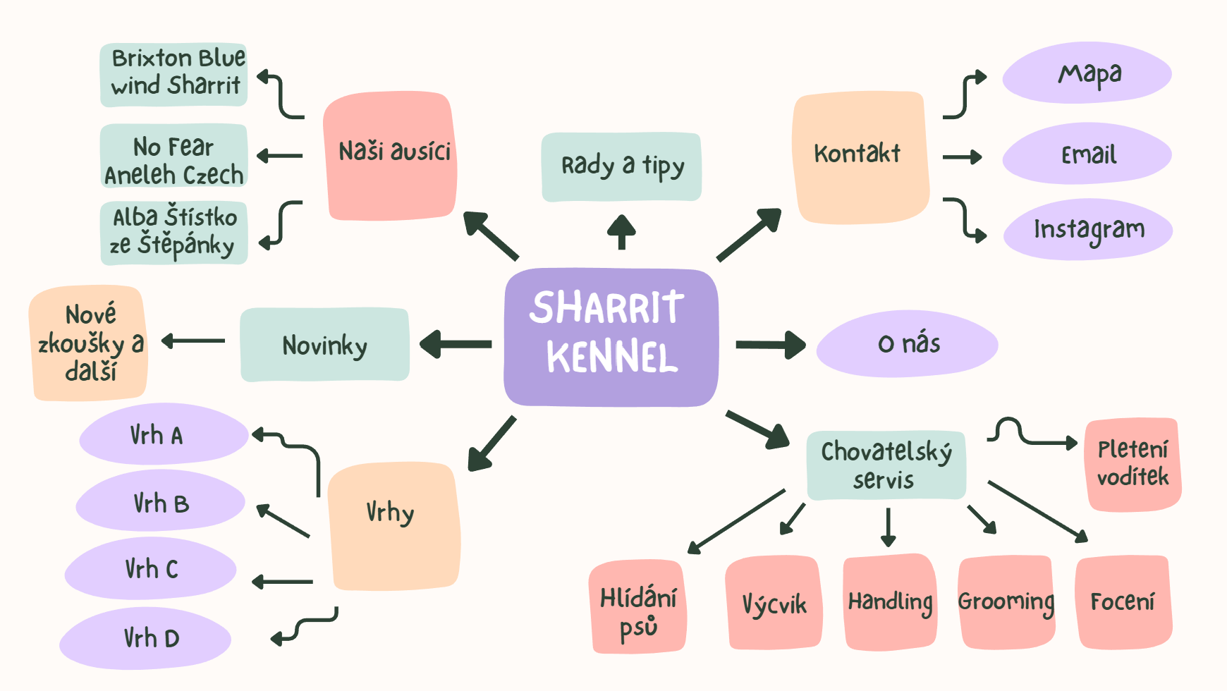 Připravila jsem pro Vás myšlenkovou mapu našich webových stránek.